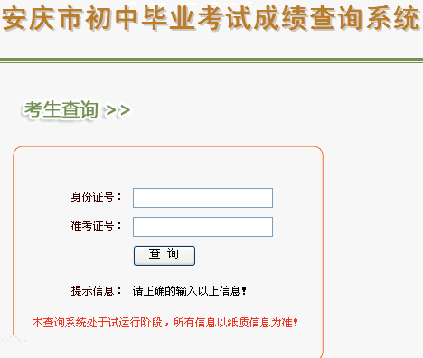 安庆市教育招生考试院 http://zhongkao.xuecan.net/anhui/chaxun/6926.html 中考成绩查询