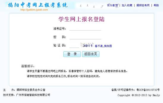 设为首页 | 加入收藏 | 揭阳招考网 | 帮助 揭阳市中考网上报考系统入口http;//jyzkbm.jyzsb.com
