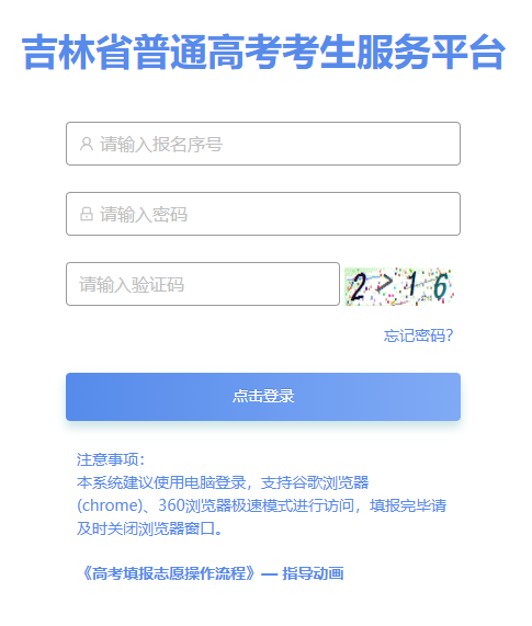吉林高考志愿填报系统入口:https://gk.jleea.com.cn