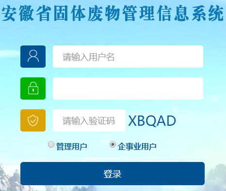 安徽省固体废物管理信息系统http://39.145.0.162:10081/loginAnHui.jsp